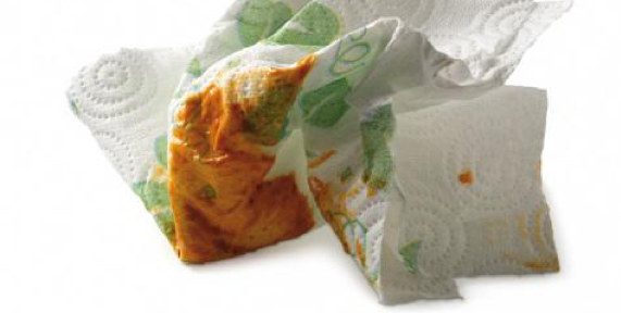 Wet or food contaminated paper and card
