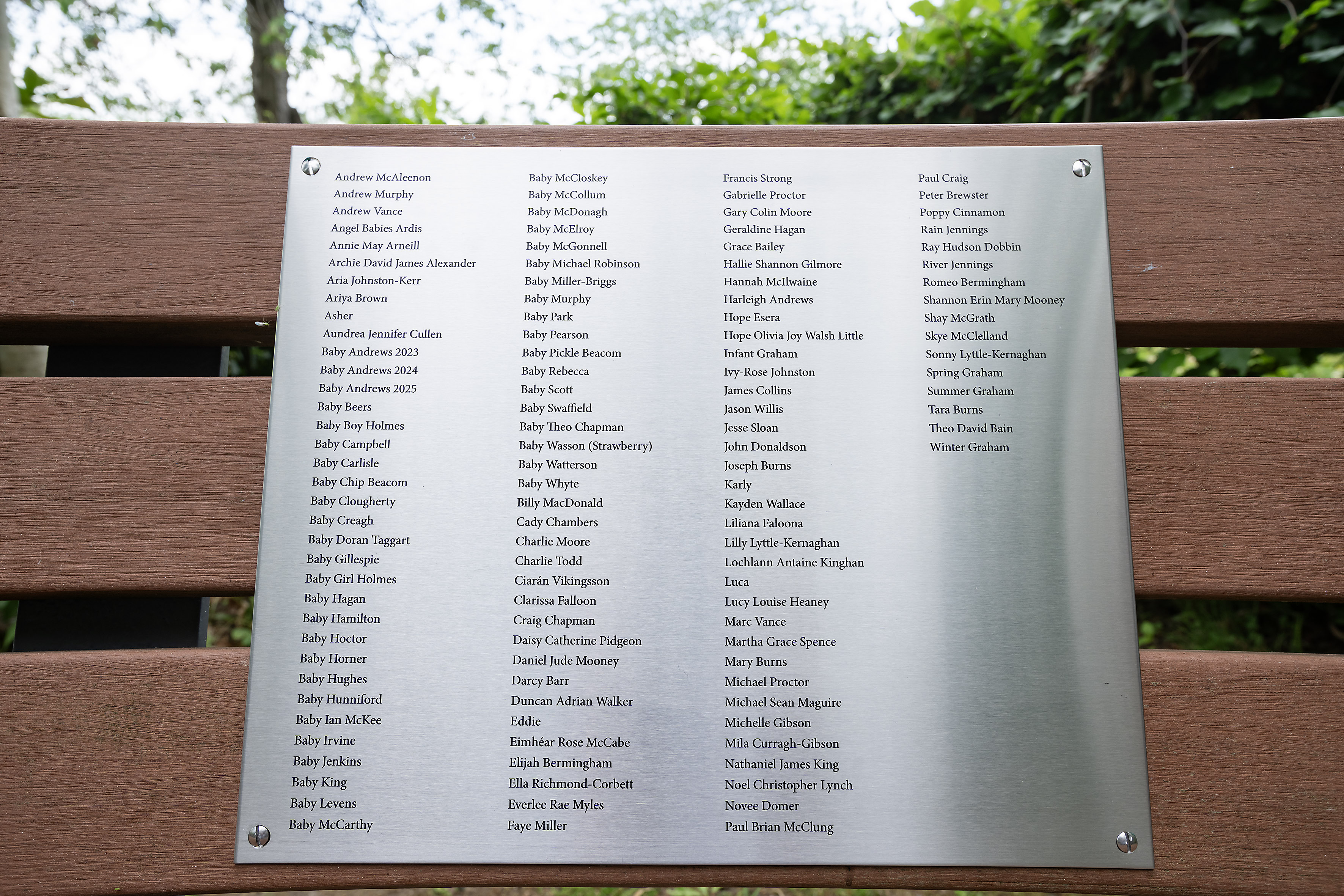 “Parents or next of kin are invited each year to submit the names of their loved ones to be engraved on a memorial plaque. We want to provide a lasting tribute and offer some further comfort, particularly for those who may have no other physical location to go to.